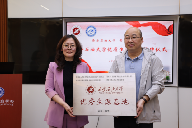 柴文华代表西安太白学校对学院一行来校共建“优秀生源基地”表示热烈欢迎和衷心感谢,并介绍了学校的办学规模、办学理念、办学特色、校园文化及学校的发展情况。希望通过此次授牌活动,进一步加强双方交流合作,为学生搭建桥梁和纽带,引领更多学子充分了解人才对国家建设发展的重大意义。