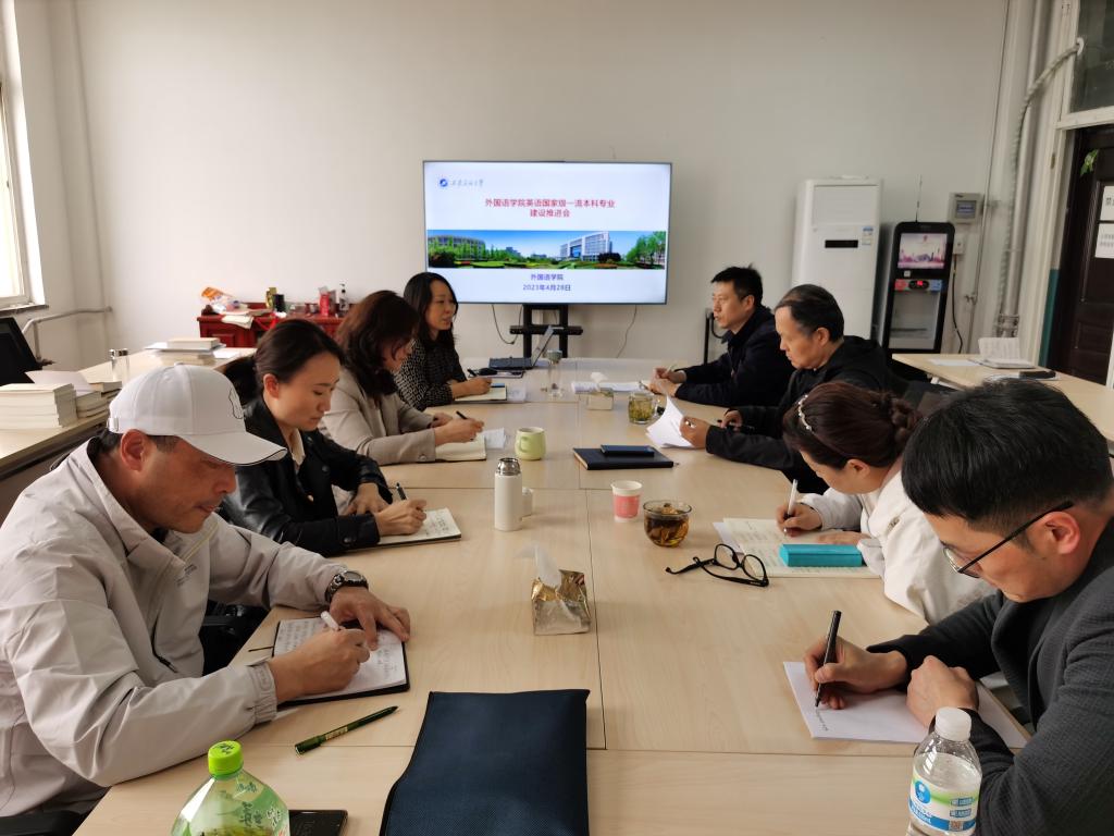 于4月28日下午16:30,在华油能源楼727召开英语国家级一流本科专业建设推进会。学院党委书记田虹霞、副院长刘辉、副院长陈武出席会议,英语专业学科带头人袁森、专业负责人董梅、英语系主任钟泽波、副主任邓林及党支部副书记苗旸参加了会议。会议由副院长刘辉主持。