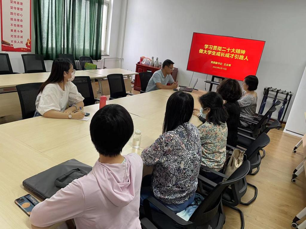 党委副书记王业青在华油能源楼727会议室为俄语系党支部全体党员讲授以“学习贯彻二十大精神,做大学生成长成才引路人”为题的主题教育专题党课,俄语系教工党支部全体党员参加学习。