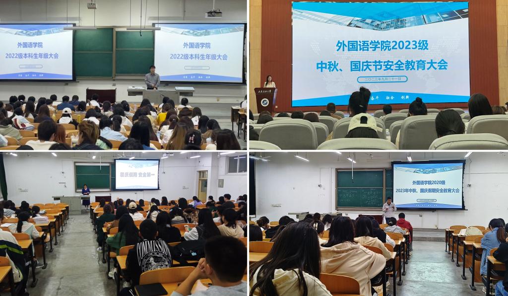 各年级辅导员分别在鄠邑校区弘石报告厅、B114、A234、B214召开2023年中秋国庆假期安全教育大会。
