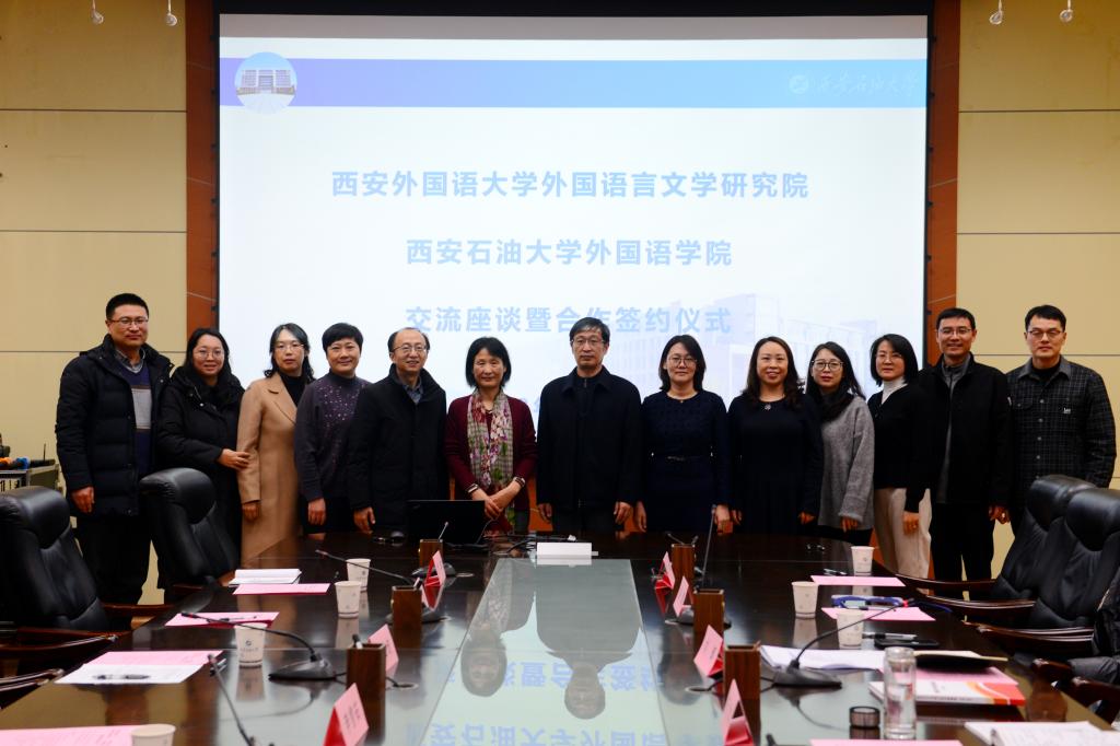 党委书记田虹霞介绍了学院的基本情况,着重就学院近年来的教学科研、师资队伍、人才培养、社会服务等情况进行交流。西安外国语大学外国语言文学研究院院长黄立波介绍了研究院基本情况及近3年取得的重要学术成果。双方代表围绕教育教学、科学研究、人才培养等方面的合作展开热烈讨论与交流。