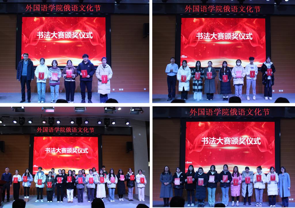 为进一步展示外语及其蕴含的深邃文化,引导学生体会外语的形美和意美,激发学习兴趣,营造良好氛围。为期一个月的俄语文化节设置了外语书法大赛、海报设计大赛等,并进行了隆重表彰,与会领导嘉宾为获奖学生颁奖。
