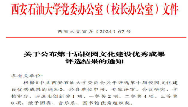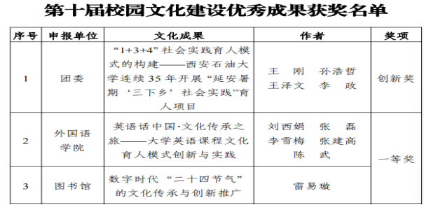 刘西娟等共同申报的校园文化成果《英语话中国·文化传承之旅——大学英语课程文化育人模式创新与实践》荣获一等奖。这是继2022年、2023年后,学院再次荣获学校校园文化建设优秀成果奖。
