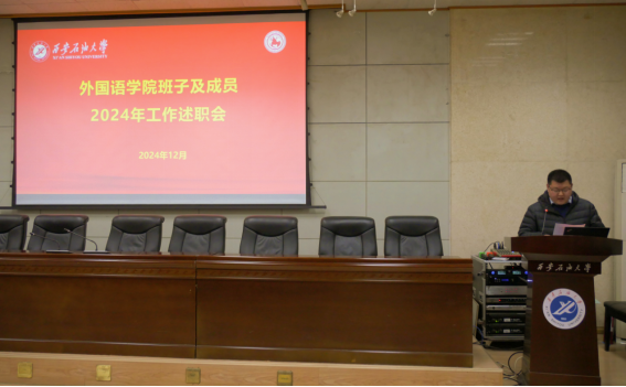 在雁塔校区会议中心第三会议室召开领导班子及成员2024年工作述职述廉大会。学院党政领导及全体教职工参加会议。会议由学院党委书记张建高主持。