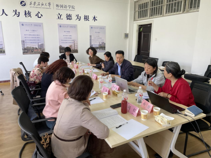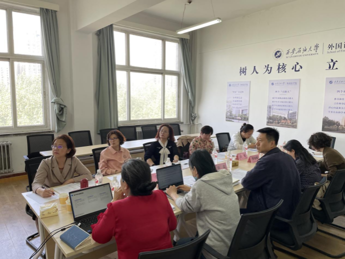 俄语系主任孟霞教授、副主任王翠副教授及中译语通陕西公司语言总监陈栋女士等校外专家莅临指导。学院俄语专业负责人、系主任、党支部书记、骨干教师及教学办主任等核心成员共同参会,会议由副院长陈武主持。