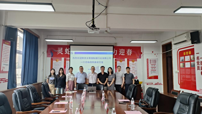 张建高代表学院对陕西友联国际旅行社长安分公司总经理田小鹏一行表示热烈欢迎,他简要介绍了学院的发展历史、学科建设、培养体系等基本情况,希望校企双方进行深度的合作,进一步贴近社会与企业的用人需求,探索教育新模式,不断增强毕业生的岗位适应能力和业务能力。