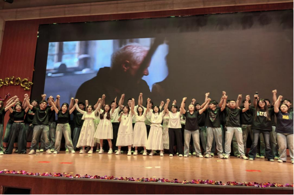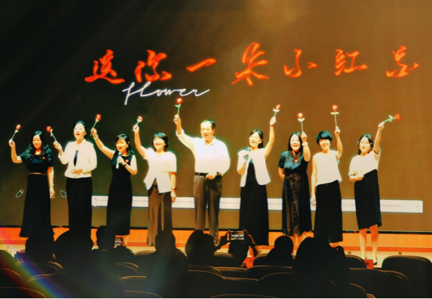第一教学部拓展课程组教师温情献唱,致敬成长,倾情演绎歌曲《送你一朵小红花》。他们从讲台走向舞台,用温暖而真挚的歌声传递着对莘莘学子的关爱与期许。这首饱含鼓励与祝福的旋律,在师生心中播撒下温暖与力量,成为汇演中一抹动人的亮色,生动诠释了和谐融洽、积极向上的校园文化氛围与教育温度。