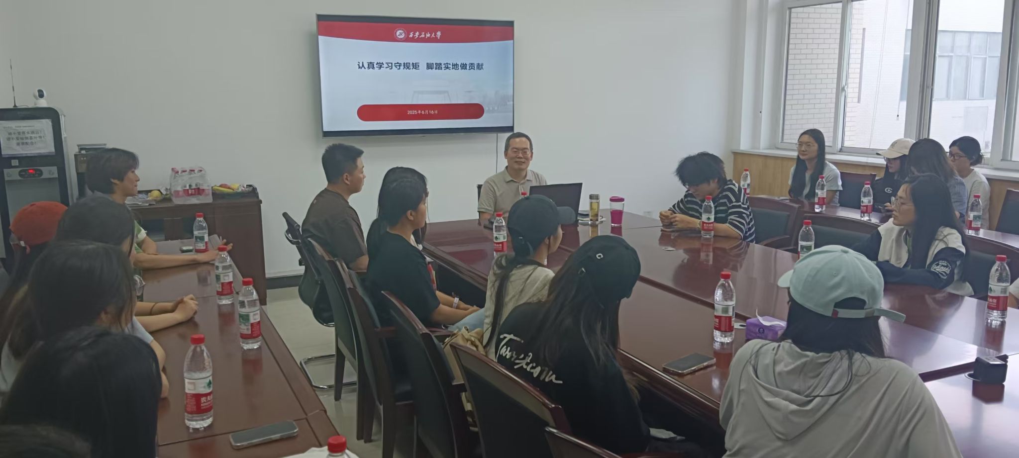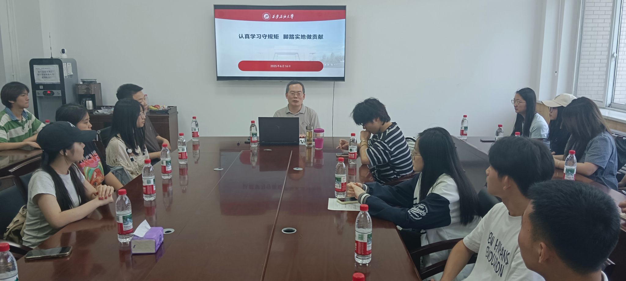 党委书记张建高以“认真学习守规矩 脚踏实地做贡献”为主题,在鄠邑校区崇文楼314会议室为2025届毕业班党员讲授专题党课。
