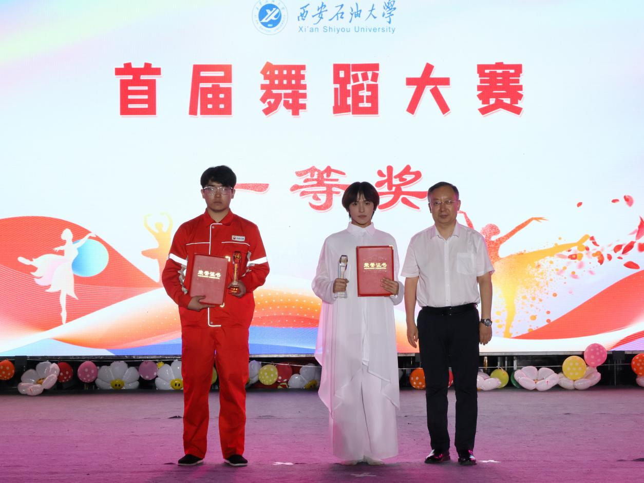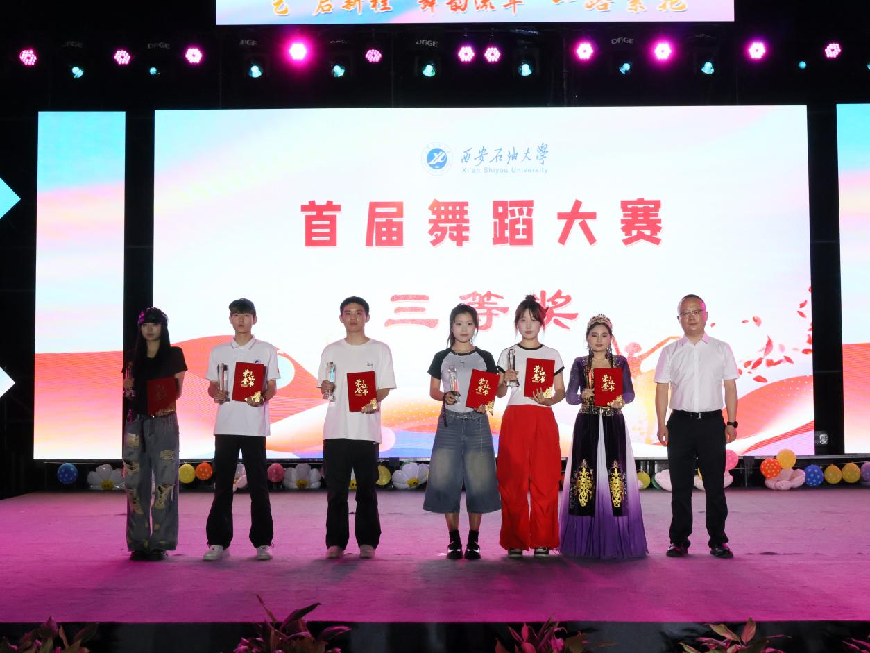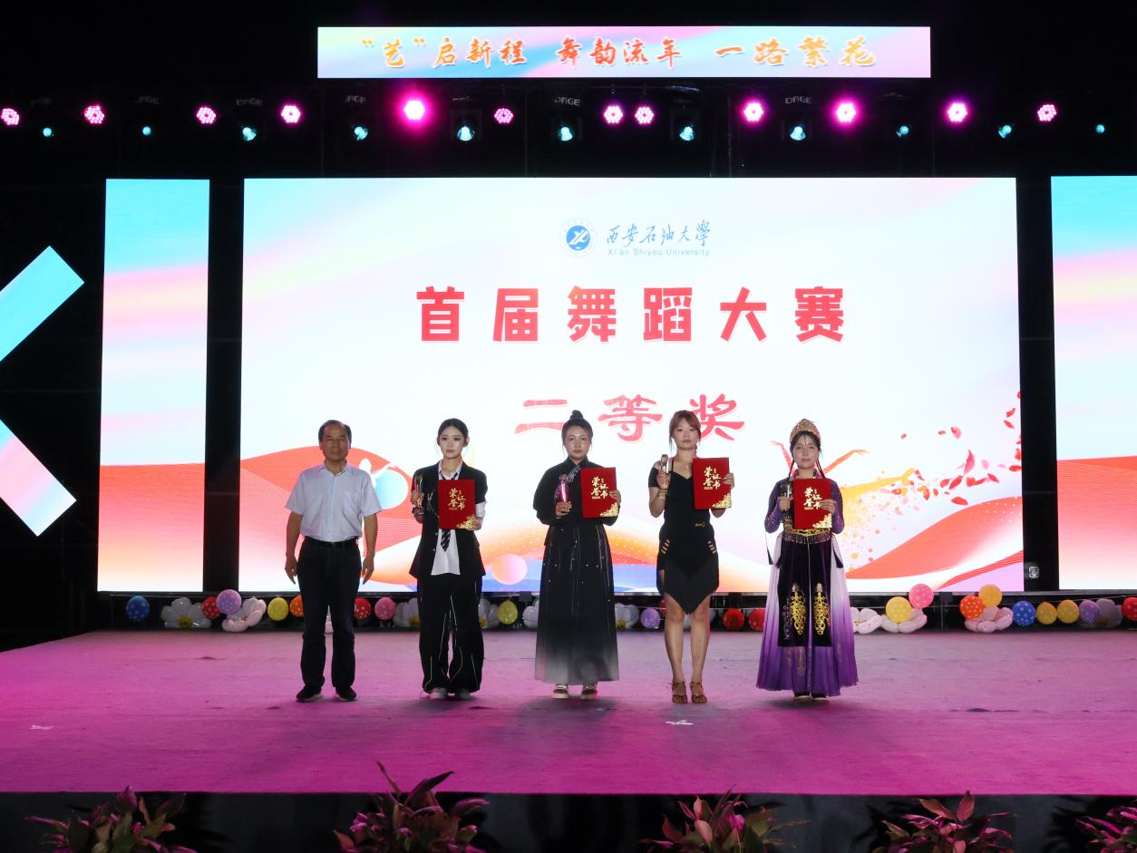 《Go Girl》、预科班《石榴之花》获二等奖;计算机学院《无需扬鞭自奋蹄》、人文学院《麦西莱普》、电子工程学院《Diamond》、石油工程学院《Keep on popping》、地球科学与工程学院《Cheer up》、体育学院《We rock》获三等奖。与会领导为获奖队伍颁奖。