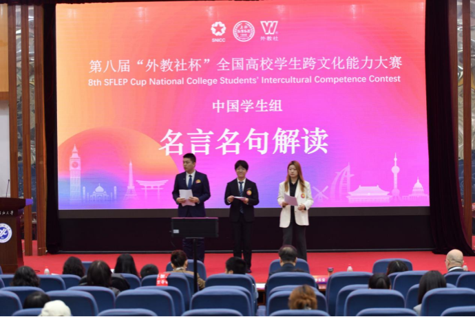 “外教社杯”全国高校学生跨文化能力大赛以习近平新时代中国特色社会主义思想为指导,紧密围绕国家战略与人才培养需求,致力于推动高等教育高质量发展,培育具备全球视野的复合型国际化人才。赛事通过“以赛促学、以赛促教、以赛促研、以赛促建”的机制,为全国高校师生搭建了展示跨文化沟通能力、交流教学经验的平台,有效促进高校人才培养模式创新,助力不同民族与国家间的相互理解与文明互鉴。