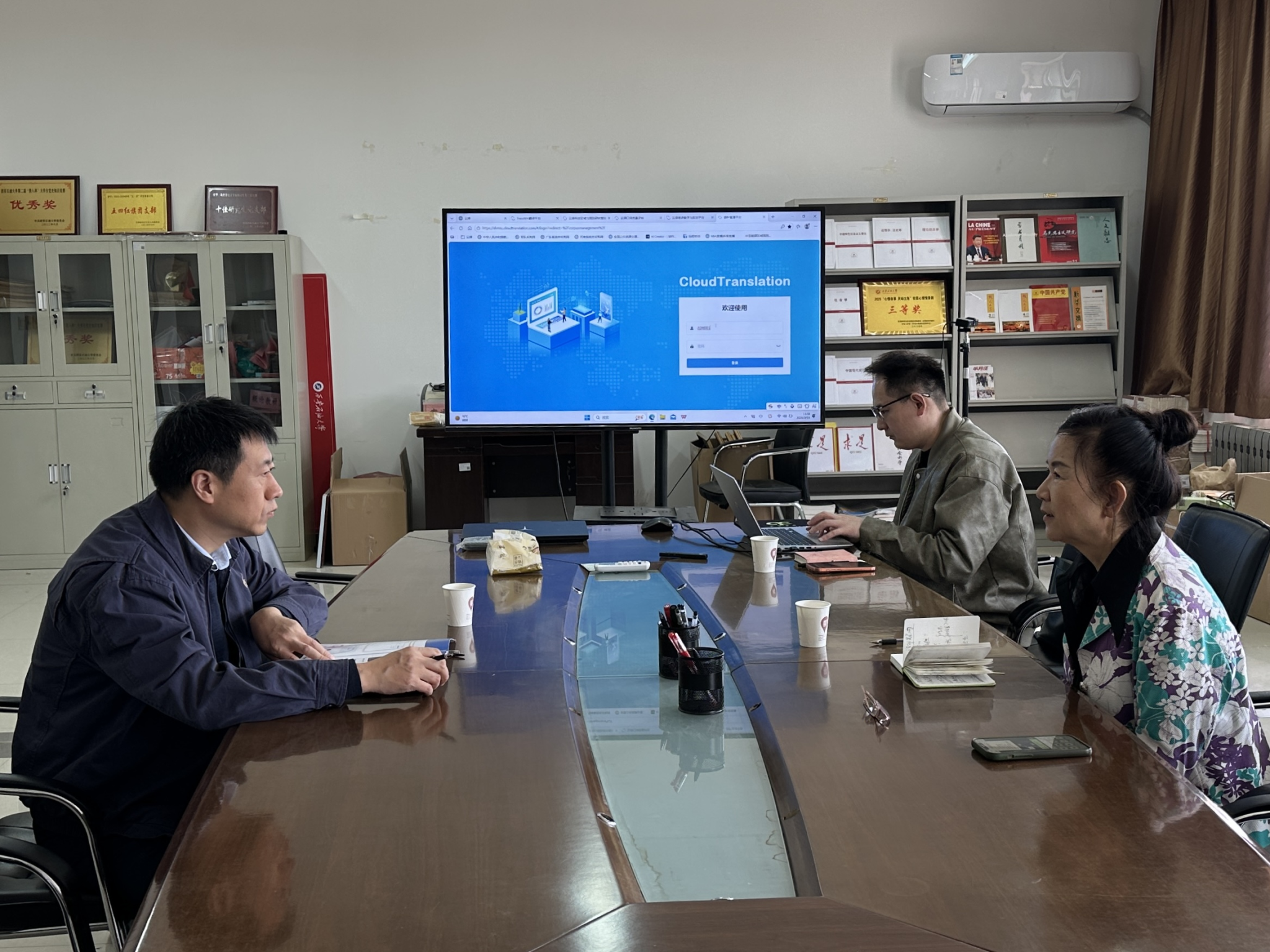 会上,陈武副院长对深圳云译科技一行的到访表示欢迎,并简要介绍了学院在学科建设、人才培养及石油科技翻译等方面的特色与优势。李丹萍、邢剑桥两位副总分别介绍了公司的发展历程、核心技术及在垂直领域语言服务中的实际应用案例。双方围绕共建实习基地、联合开发石油科技翻译课程、推进师资培训及科研项目合作等内容进行了深入交流,并达成初步合作意向。