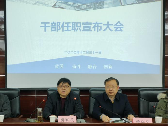 2020年12月31日上午,在雁塔校区会议中心第五会议室召开了干部任职宣布大会。学校总会计师樊晓民出席,党委组织部常务副部长种宇宏到会并主持会议。