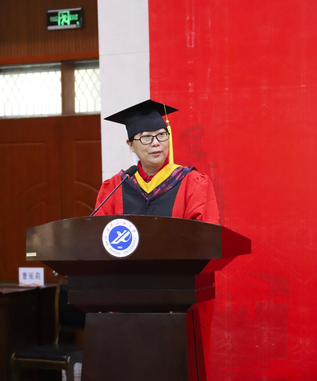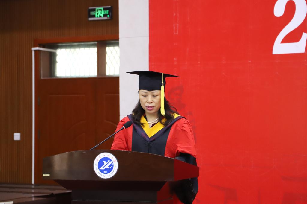 在雄壮的国歌声中,拉开了2021届本科毕业生学位授予仪式,于艳英院长代表学院致辞,为毕业生送上诚挚祝贺与浓情寄语。她勉励同学们要心存“四个感恩”:一是感恩自己,通过四年的努力奋斗和认真学习,为大学生涯画上圆满句号,获授文学学士学位,为自己人生征程充满了力量和动力;二是感恩父母,要铭记父母养育之恩,理解和陪伴,要传承好孝道,在生活中用实际努力回馈父母;三是感恩学校,感恩学校老师四年的谆谆教诲,要学会尊师重道,继续传承和弘扬汗汗漫画